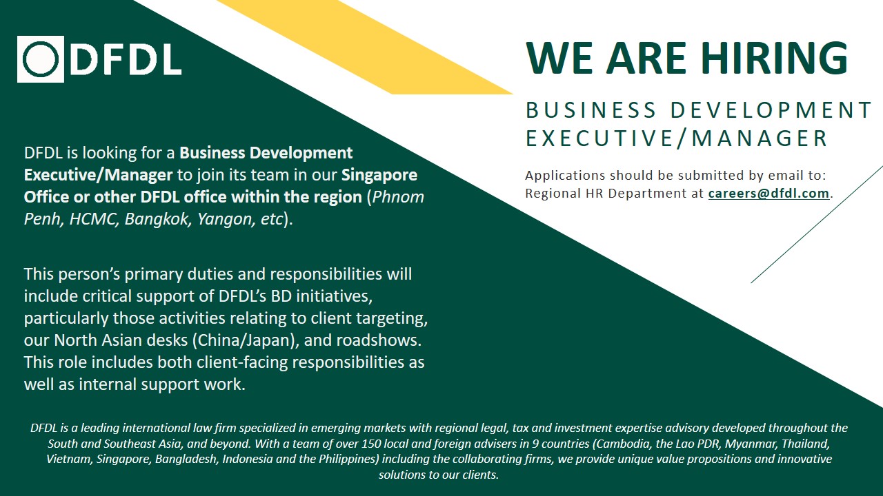 Dfdl Legal And Tax On Twitter Dfdl Is Looking For A Business Development Executive Manager To Join Its Team In Our Singapore Office Or Other Dfdl Office Within The Region Phnom Penh Hcmc